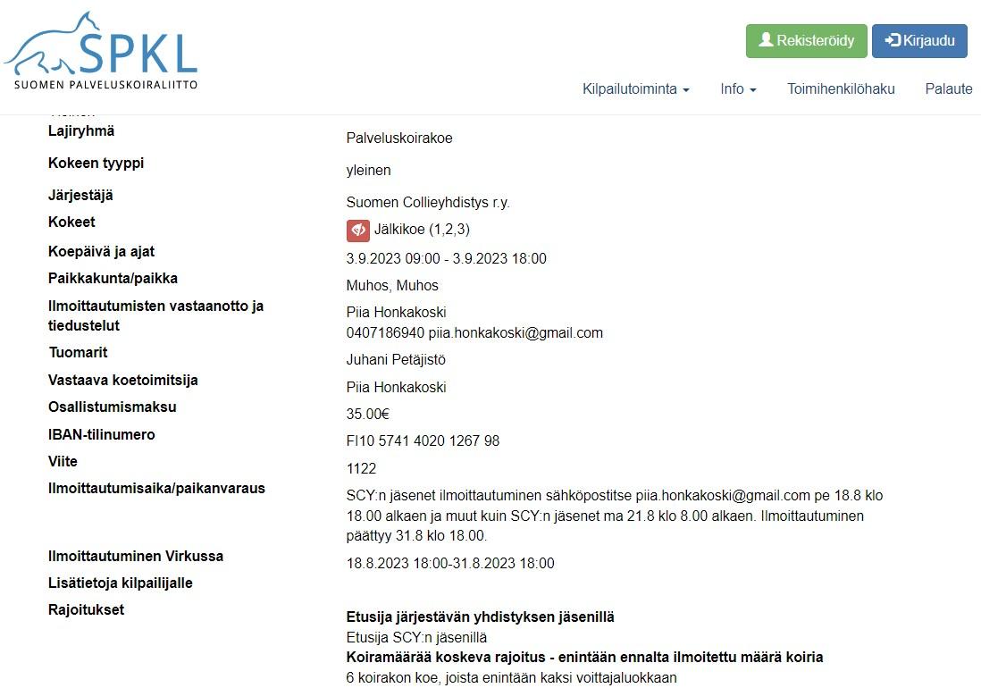Jälkikoe Muhoksella. Tuomarina Juhani Petäjistö.Ilmoittautuminen ja lisätiedot Virkussa.
